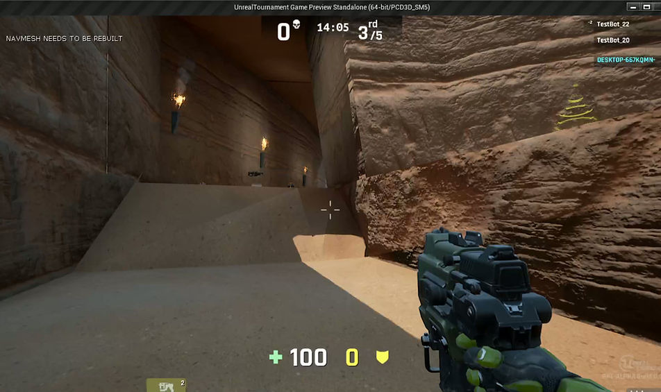 For this level, I analyzed movement and flow patterns from first-person shooter levels I found effective, drawing on games such as Tribes: Ascend for its emphasis on fluid traversal and Team Fortress 2 for its clear and readable visual design, and adapted those ideas to align with Unreal Tournament’s pacing. My goal was to create a layout that would feel immediately traversable to experienced players while remaining easy for new players to learn.